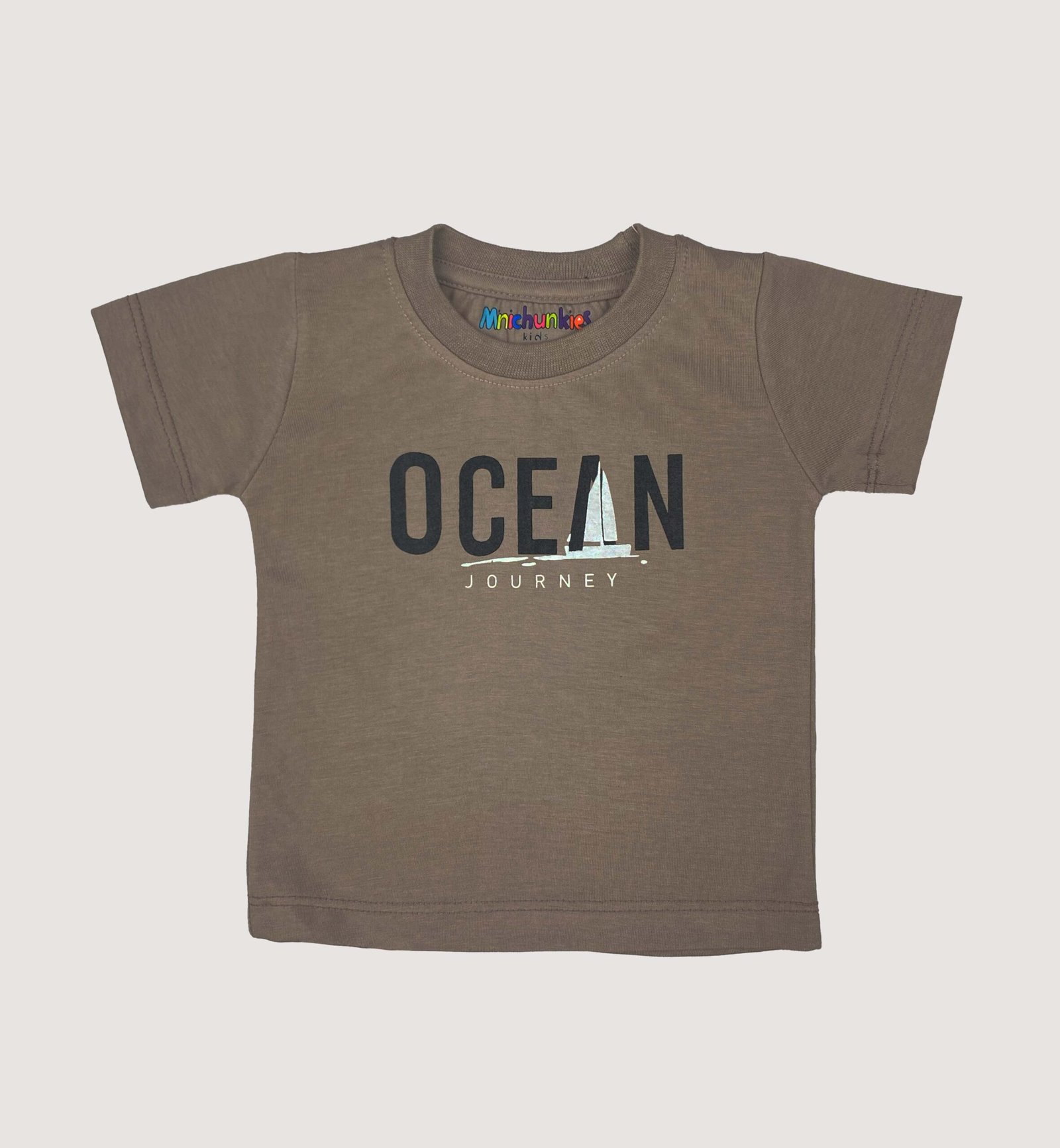 Get your little one ready for a cool and breezy day with the Infant Boys Ocean Journey 2-Piece Suit. This stylish set features a soft brown jersey t-shirt with a bold “Ocean Journey” sailboat print and lightweight white shorts decorated with palm tree patterns. Made from breathable fabric, it ensures comfort and ease for daily wear, playtime, or summer outings.
